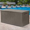 – MULTIPURPOSE GARDEN STORAGE- Doubles as an extra table or bench to accommodate two adults of up to 800lbs., this deck box blends into any yard or patio while storing patio furniture, outdoor cushions, gardening tools, pool supplies, etc.