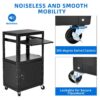 – Effortless Portability: The AV presentation cart is designed for easy mobility, featuring strategically positioned wheels on its sturdy legs. With 2 reliable caster brakes, the cart provides both flexibility for moving around and secure placement options when stationary, making it effortless to transport your AV equipment wherever it’s needed.