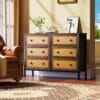 Dextrus Chest of Drawers, Heavy Duty Rattan Woven 6-Drawer Dresser, Storage Organizer Unit for Bedroom, Living Room, Hallways, Entryways, Rustic Brown