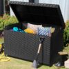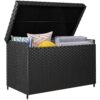 Dextrus Deck Box- 230 Gallon Wicker Large Outdoor Storage Box, Waterproof Patio Furniture and Storage Deck, Rattan Storage Bin – Black
