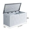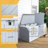 – VERSATILE USAGE – Perfect for blending into any yard or patio, this deck box is ideal for storing patio furniture cushions, outdoor toys, gardening tools, pool accessories, and more; The top layer can also serve as an additional table or stool. Note: Appears whitish under bright light and bluish-gray under dim lighting.