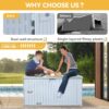 – AMPLE STORAGE CAPACITY – This oversized outdoor storage box boasts a spacious 230-gallon capacity; With dimensions measuring 62.2″L x 31.1″W x 32.6″H, it provides abundant room for indoor and outdoor storage, ideal for cushions, toys, tools, and more.