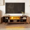 Dextrus LED TV Stand for TVs up to 65 inch, Farmhouse TV Entertainment Center Cabinet for Living Room, Walnut