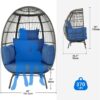 Dextrus Outdoor Egg Chair, 440lbs Capacity Wicker Patio Basket Chair, All-Weather Oversized Stationary Egg Lounger Chair – Blue