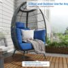 Dextrus Wicker Egg Chair, Oversized Lounger Egg Chairs with Stand and Cushion, 385lbs capacity for Patio, Balcony, Bedroom – Blue