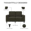 Contemporary with a touch of modern flair, the DHP Cooper Loveseat is the two-seater sofa you need in your life. Why This stylish couch is designed with a beautiful and soft upholstery, and features pocket coil seats to help provide optimal comfort for those movie nights or mid-afternoon naps. What’s more, the Cooper is built with a sturdy wood frame that sits on solid rubber wood legs with a black finish to ensure it will stay in your home for years to come. Do you enjoy hosting and need even more seating areas All you have to do is pair with the matching DHP Cooper Sofa which provides three more comfortable seats for your friends and family to spend the evening catching up. With a variety of color and material options, this DHP Cooper 2 Seater Loveseat is the perfect piece of furniture to complete your living room decor. What are you waiting for