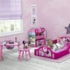 Transition their space from a nursery to a toddler room with the perfectly sized Minnie Mouse Plastic Sleep and Play Toddler Bed from Delta Children. Featuring three-dimensional silhouettes of Minnie Mouse with colorful decals of Minnie, Daisy Duck, Figaro and Bella, this sturdy toddler bed creates a comforting environment that promotes a sound sleep. Attached Guardrails: Attached guardrails will ensure your little one is safe and secure throughout the night. A low mattress height makes it easy for kids to enter and exit on their own, reinforcing their big-kid independence. Sturdy Plastic: Built to last, this toddler bed s sturdy plastic construction creates a cozy, inviting environment, promoting sound sleep for your little one. About Minnie Mouse: Sweet, stylish and a lover of all things polka dot, Minnie Mouse spends her free time dancing, singing and hanging out with her lifelong sweetheart, Mickey. Help bring her cheerful spirit to your little one s room with this item from Delta Children s colorful collection of Minnie Mouse kids’ furniture.
