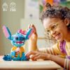 – The buildable Stitch model includes ears that can move up or down and a turning head with space for the decorative flower, plus a hand that can hold the brick built ice cream cone