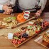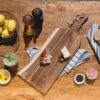 – This large cheese board platter has a live bark edge, giving each serving board a unique appeal of its own. Use the hemp hanging loop to display this plank-style wooden cutting board when not in use