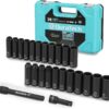 DURATECH 24-Piece Impact Socket Set, 1/2 Drive Deep Impact Socket Set with 2pcs 1/2-inch Hexagon Extension Bars, Metric i 1/4 SAE, Hard Case Included
