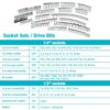 - 10 – 12 pt inch sockets: 3/16, 7/32, 1/4, 9/32, 5/16, 11/32, 3/8, 7/16, 1/2, 9/16-in.