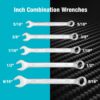 - 5 – 12 pt inch combination wrenches: 5/16, 3/8, 7/16, 1/2, 9/16-in.