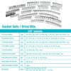 - 13 – 12 pt inch sockets: 1/4, 5/16, 3/8, 7/16, 1/2, 9/16, 5/8, 11/16, 3/4, 13/16, 7/8, 15/16, 1-in.