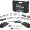 DURATECH 93 Piece Mechanics Tool Set, SAE/ Metric Drive Socket Set(1/4 inch and 3/8 inch) with Ratchiet Handle Spark Plug Magnetic Biti Driver and Tool Accessories Set