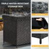 – Versatile Functionality: Acting as a reliable storage spot, this rattan storage box maintains outdoor orderliness while safeguarding cushions, pool supplies, toys, and garden tools from the elements. Ideal for various outdoor settings like patios, gardens, pools, and decks, the lid doubles up as a convenient tabletop, perfect for dining or engaging in leisurely activities like chess and games.