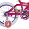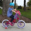 The 16-inch Girl’s Barbie Bike by Dynacraft has a bright pink satin finish and cute Barbie designs. It’s packed with fun accessories to keep your child entertained for hours. The bike features a “Ride with Me” Barbie minibike on the handlebars, letting your girl rider to take her favorite Barbie along. There’s also a detachable handlebar bag for carrying more Barbies. The adjustable padded seat and polka dot grips add comfort and style. Plus, the adjustable training wheels, rear coaster, and front hand brakes help your child ride safely with confidence. Your little one will create lasting memories on this Barbie bike for years to come.