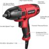 800W Electric Impact Wrench, Heavy Duty 7.5 Amp Corded Max Torque 450 Ft-lbs 3400 RPM, 1/2 Inch with Hog Ring Anvil