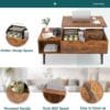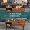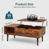 edx Adjustable Height Wooden Coffee Table with Hidden Compartments and Shelves – Perfect for Small Homes, Apartments, Reception Rooms, Rust Brown