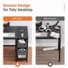 2 Drawers Home Office Desk–Enrich your storage space! These computer desks are designed with 2-tier drawers and a shelf. The decent cloth drawers are removable so you can change it at need. You can put magazines, files, books, and posters in it. The side iron hook can hang headphones or bag stably.