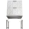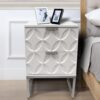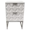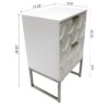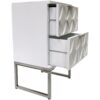 This 2 drawers end table has a minimal footprint, making it ideal in smaller family rooms or cramped corners. It’s built on a metal base with two sled legs for a modern silhouette. The table is made from engineered wood in a crisp white finish and features an inlaid lattice-inspired design on the drawer fronts. Metallic gray finished handles and wood slides make it easy to access your nighttime essentials. This end table measures 17.25” wide and 13.25” deep, so it can fit between your bed and wall, while the 28.25 height makes it an ideal fit next to standard size bed frames and sofas.
