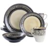 Add a subtle touch of color with The Elama Desert Sand 16 Stoneware Dinnerware Set. Features a beautiful geometric rim and elegant tone of Taupe, this set is perfect for formal and every day use. Constructed of Stoneware, dinnerware is microwave and dishwasher safe.