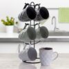 The delicate and elegant diamond Waves mugs will add some style to your mornings and transport you to the tranquility of stunning beaches. Made of durable stoneware, these beautiful cups feature an intricate diamond-like texture for added flair. This set comes with a sturdy metal stand to easily display and store these graceful cups.