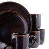 Elama Midnight Beach 16 Piece Round Stoneware Dinnerware Set was made with you in mind. the beautiful metallic plate set is both elegant and modern. Beautiful for special occasion settings and durable for everyday use. Constructed of Stoneware with a deep rich black tone, washed design and brown trim, this set is surly to make a statement. Each piece in this 4 person set is microwave and dishwasher safe, making is easy and convenient for for reheating and clean up.