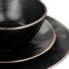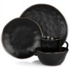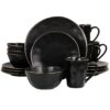 Add a beautiful accent to your dining table with the Elama George 16 Piece Round Stoneware Dinnerware Set in sophisticated Matte with Gold Rim Trim. Each dish is creatively crafted with a unique textured, uneven dimple design and beautifully finished off with an elegant gold rim. Constructed of Stoneware, this set is ideal for special occasion gatherings and sturdy for every day use. Each dish is microwave safe for quick reheating and dishwasher safe for easy cleaning.