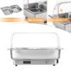 Electric Chafing Dish Buffet Set, 9 QT Roll Top Stainless Steel Chafer with Temperature Control & Transparent Lid Chafing Server Set, Food Warmers for Parties