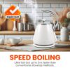 The Elite Cuisine 1.25-qt. Cool-Touch Electric Kettle not only adds elegance to any kitchen countertop but also offers efficient water boiling, surpassing traditional stovetop kettles in both speed and energy savings. Its double-wall cool-touch exterior enhances safety, while the stainless steel interior ensures no contact between plastic and water surfaces, emphasizing both style and functionality in kitchen appliances.