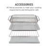 – Includes wire rack, bake pan, mesh frying basket