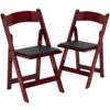 Emma and Oliver 2 Pack Mahogany Wood Folding Chair with Vinyl Padded Seat