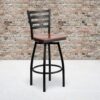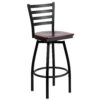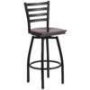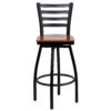 Emma and Oliver Black Metal Ladder Back Swivel Barstool, Cherry Wood Seat