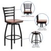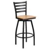 Allow customers to access the bar and bar height table at your restaurant easily with a swivel barstool. Commercial furniture needs to be durable and low maintenance so metal barstools are a popular choice for furnishing restaurants, pool halls, lounges, bars and other high traffic establishments. This barstool is easy to clean, which is an important aspect when it comes to a business. Built to withstand the everyday hustle and bustle in the restaurant and hospitality business, these dining stools will also look great in your home. The beautiful wood seat and ladder back design will keep guests comfortable. The 360 degree swivel seat allows you to swing around effortlessly. The frame is stabilized using two welded support bars, which includes a footrest to prevent leg discomfort. The floor glides help protect your floors and ensure smooth gliding. Use this chair in your kitchen or dining room to give your decor a fresh look. The simple and lightweight design of this stool makes it ideal for residential or commercial grade use.