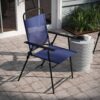 Emma and Oliver Munroe Set of 2 Textilene Folding Sling Style Patio Chairs with Armrests