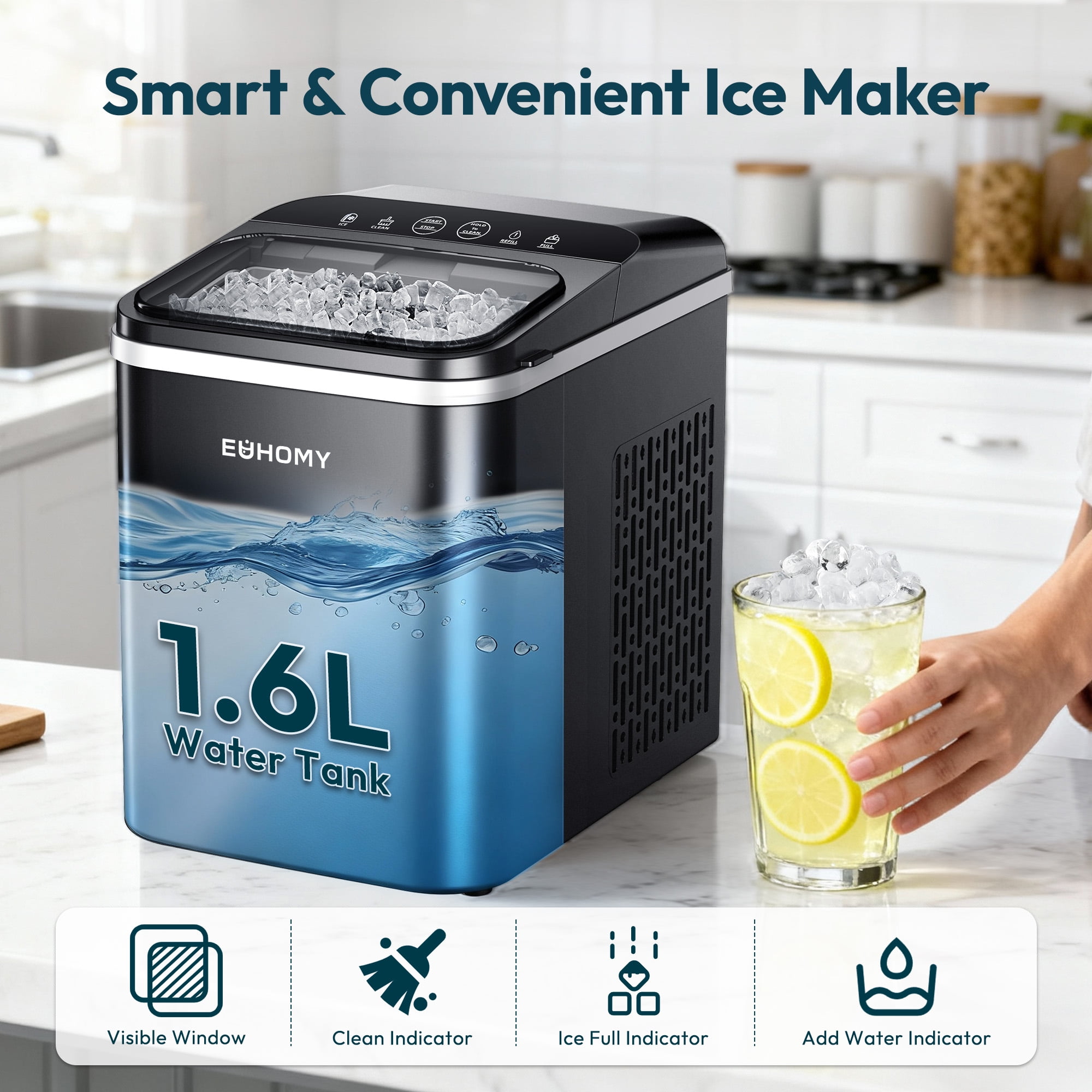 Forget long waits with freezer trays. The EUHOMY Nugget Ice Maker produces up to 35 lbs of soft, chewable ice every 24 hours, with the first batch ready in just 10 minutes. Its spiral extrusion system creates restaurant-style nugget ice that’s perfect for cocktails, sodas, smoothies, or simply keeping water refreshingly cool. Whether you’re entertaining guests, fueling an office, or cooling down after a workout, this portable ice maker ensures you always have a steady supply of pebble ice on demand.PORTABLE & SPACE-SAVING DESIGN: