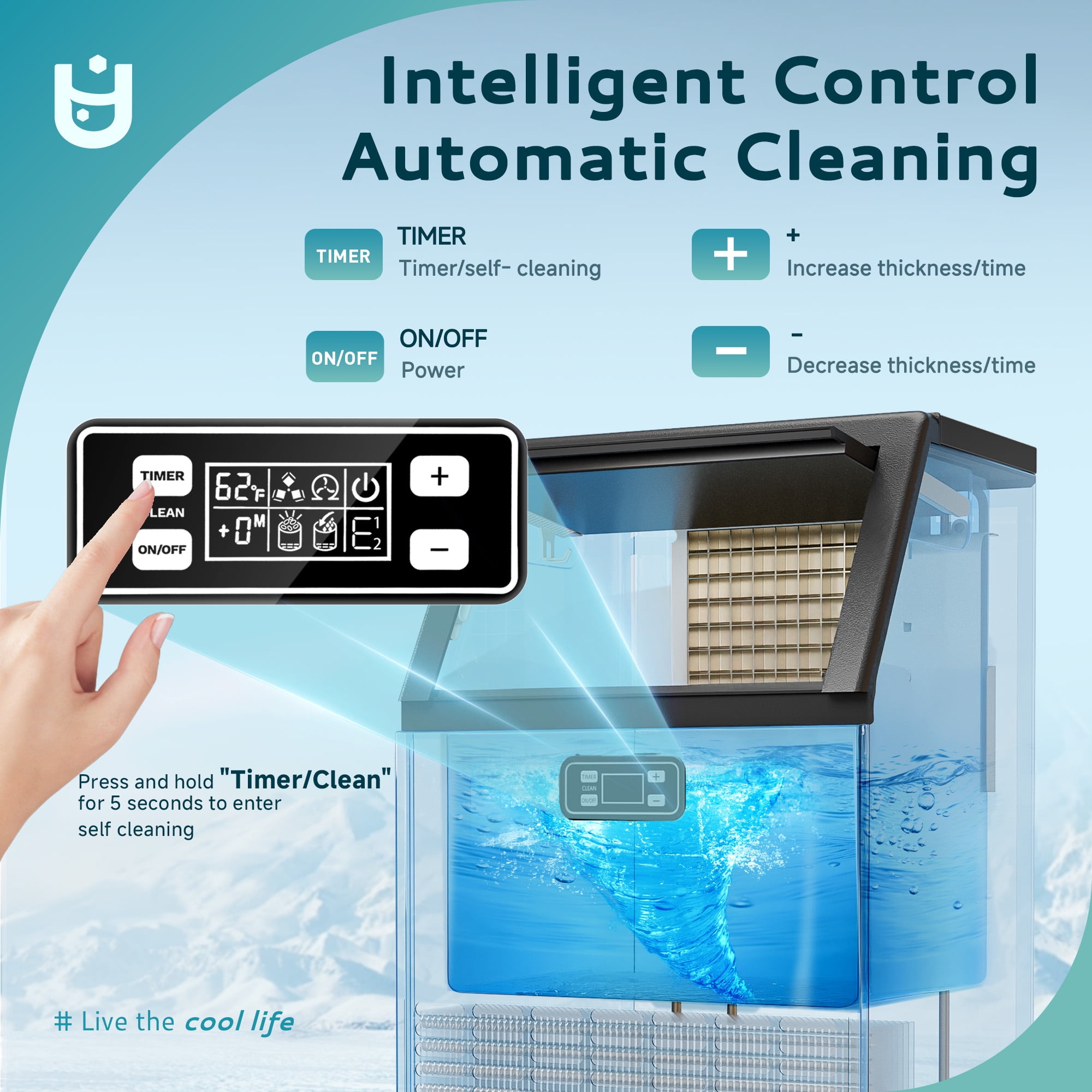 Intelligent LCD Control Panel for Easy Operation: The Euhomy ice maker features an intelligent LCD control panel, allowing you to easily monitor and adjust settings. It monitors ambient temperature to achieve optimal ice-making results; you can also adjust ice cube size by controlling the ice-making time. A simple press of a button activates the self-cleaning function for easy maintenance.