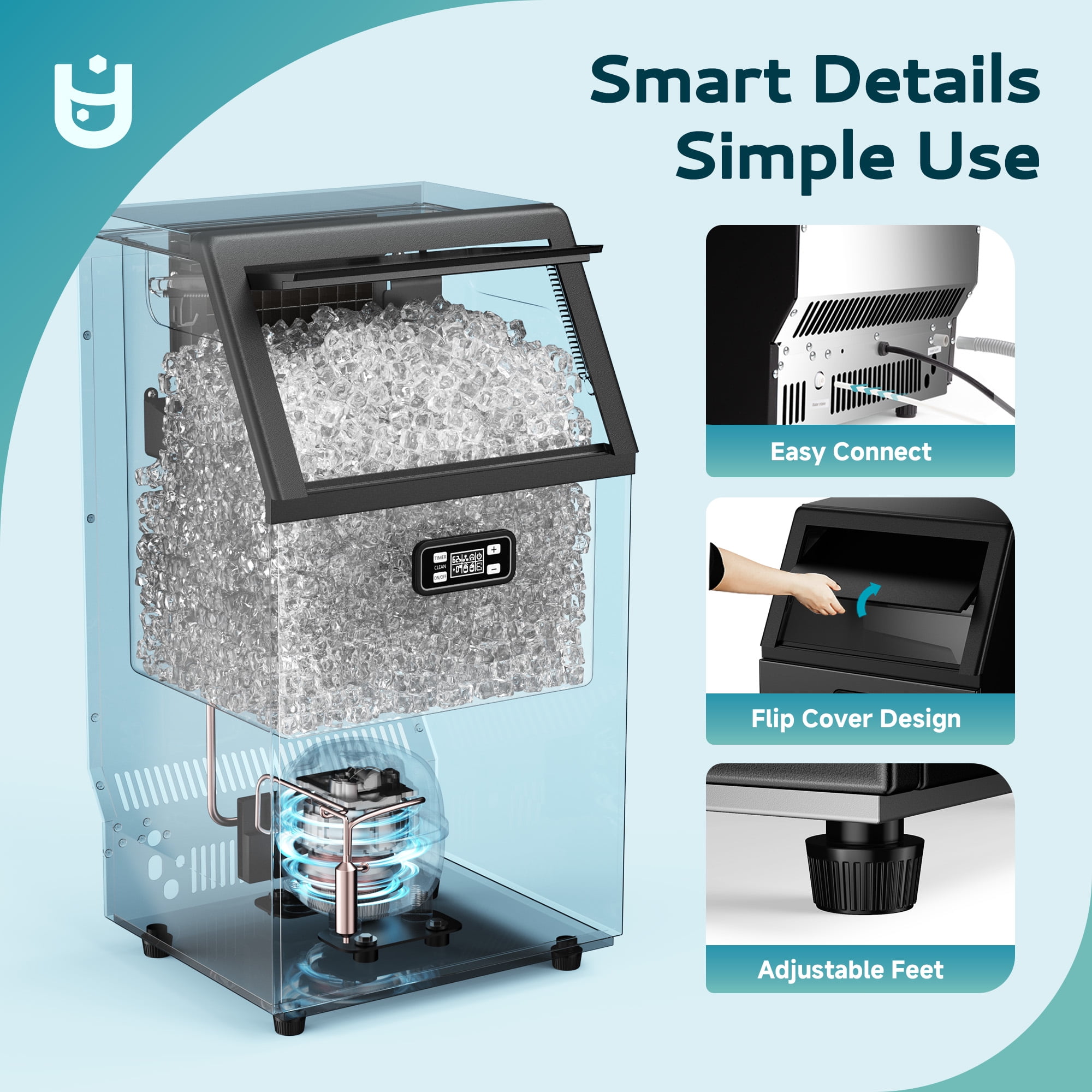 Highly efficient and quiet ice making: Euhomy commercial ice makers operate quietly and produce ice with high efficiency. A powerful compressor ensures rapid and noiseless ice making. With its energy-saving design, this ice maker helps you save on your electricity bills, making it a wise long-term investment.