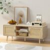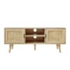Eumyviv Farmhouse TV Stands for 55 Inch TV,Wood Media Entertainment Center Cabinet Console Table with 2 Rattan Doors, Natural Oak, H0015