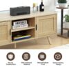 The rattan TV stand is finished in a sturdy MDF frame, featuring gorgeous rattan panels on each door to make this oak rattan TV console look more farmhouse and Bohemian in style. Doors are adorned with a stylish black metal handle, allowing you easy access to your belongings. Natural rattan TV consoles can be coordinated with any color scheme and decoration style. Of course, our retro wood television stand entertainment center supports the Max screen size of 55 inches. Create an inviting and warm atmosphere in your home with the furniture you’ve been looking for.