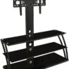 – Overall Dimensions are 47″x16″x19″ (L*W*H). It accommodates TVs up to 55 inches. The recommended weight capacity is 90 lbs for the top and 22 lbs for each cabinet.