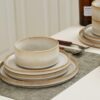 Famiware Star Stoneware Dinnerware Sets, Plates and Bowls Set for 4, 12 Piece Dish Set, Cappuccino White