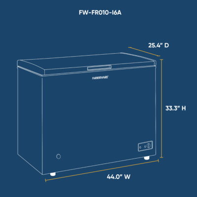 The Farberware 10.4 cu ft Chest Freezer is the ideal appliance to store all your frozen goods. With its spacious interior, you can store a variety of frozen foods, such as meats, fish, vegetables, fruits, and more. This chest freezer is designed to keep your frozen items organized, so you can easily find what you need. Its durable construction ensures that your items will be conserved safely. The Farberware 10.4 cu ft Chest Freezer is the perfect addition to any home, providing you with the storage space you need to keep your frozen goods fresh and accessible.