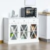Tune into modern farmhouse living with this sideboard from HOMCOM. This storage sideboard fits nicely with any decor and can be used in the kitchen, dining room, or living room to create stylish additional storage. This buffet server comes with 3 drawers and an enclosed cabinet to store daily accessories, utensils, dry goods, as well as plates and dishes. The framed glass doors bring elegance and class to your kitchen design. Enhance your storage today with HOMCOM.