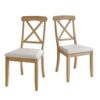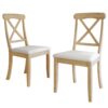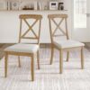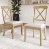Upgrade your dining space with our durable wooden dining chairs. Featuring a seat cushioned in 100% polyester linen fabric with high-density foam for ultimate comfort, these chairs ensure a luxurious dining experience. The classic X-cross high backrest embodies charming farmhouse-style design, adding a touch of rustic elegance to your space. With four sturdy solid wood legs, assembly is effortless, allowing you to enjoy your new chairs in no time. Available in Brown, Natural Oak, Black, White, and Grey finishes, these chairs effortlessly complement any decor style. Each order includes a set of two chairs, simplifying and enhancing your dining area with style and comfort. Upgrade your dining experience today with our thoughtfully crafted wooden dining chairs.