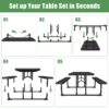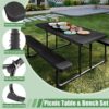 – Durable & Weather-Resistant: The table and benches are made with high-density polyethylene (HDPE) material, providing excellent resistance against the elements, including UV rays, moisture, and extreme temperatures. Perfect for both outdoor and indoor use.