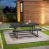 – Large Seating Capacity Spacious picnic tables seat up to six adults; benches support up to 550 lbs each.