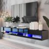 Floating TV Stand for 75 inch TVs, 71in Long Wall-mounted Entertainment Center for Living Room, Modern Black TV Stands with High Gloss Finish and LED Lights, TV Cabinet Media Consloe, Black