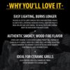 – Infuses Mouthwatering Flavor: Ideal for smoking and grilling, our charcoal infuses that authentic smoky and wood-fired flavor into burgers, BBQ, chicken, fish, vegetables, and much more.
