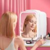 This skin care mini fridge is designed with modern thermoelectric technology. It consumes less power than most laptop chargers. And it is equipped with a touch screen LED light HD mirror door, which can adjust three levels of brightness to help you better skin care and makeup. Turn on the LED light of the fridge to show your beauty more clearly on the LED mirror. Both hot and cold!